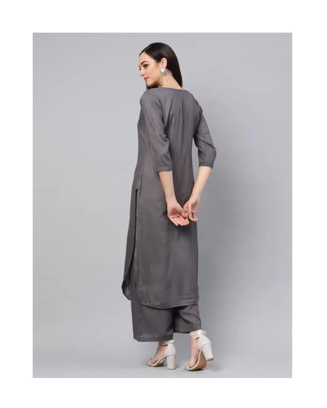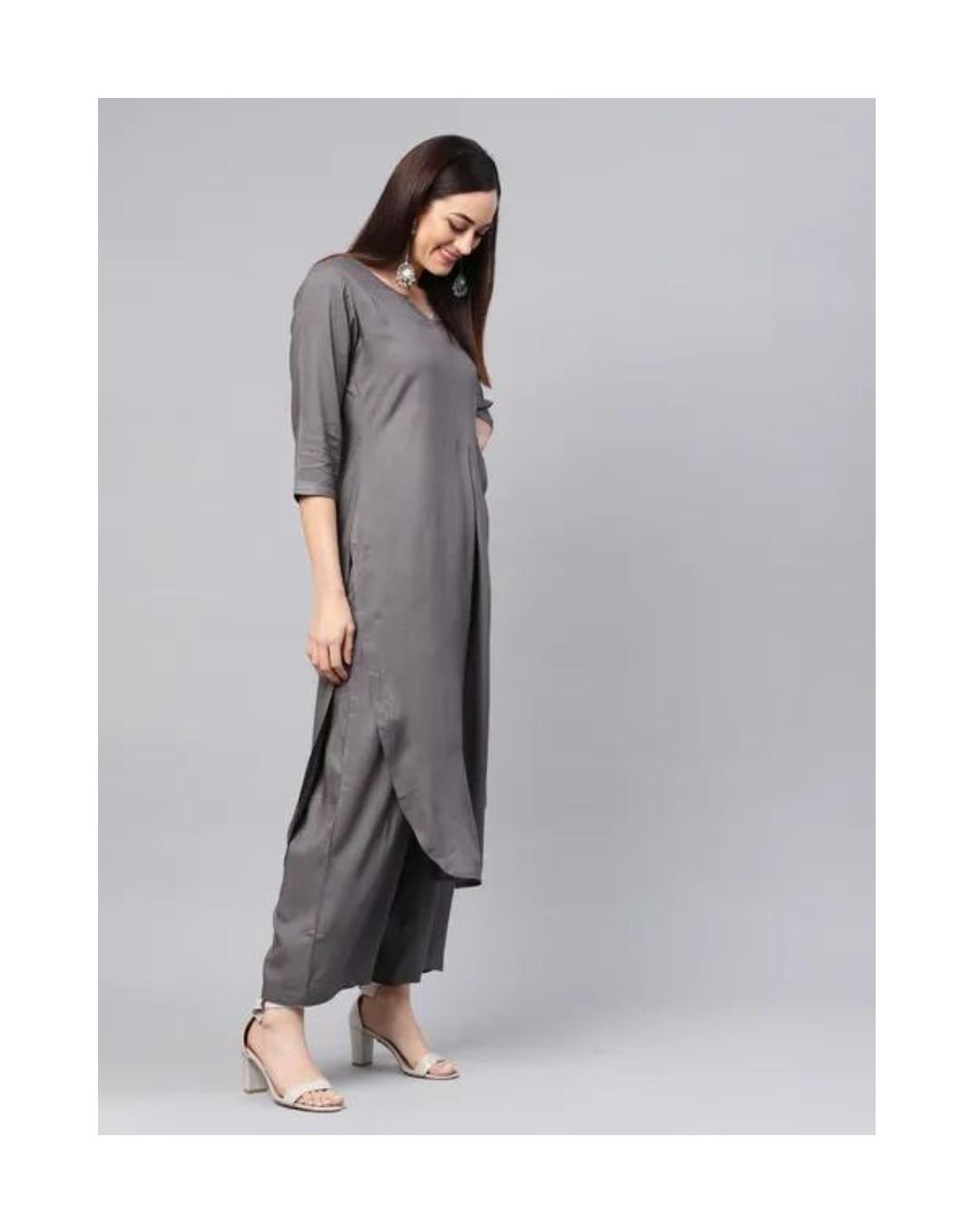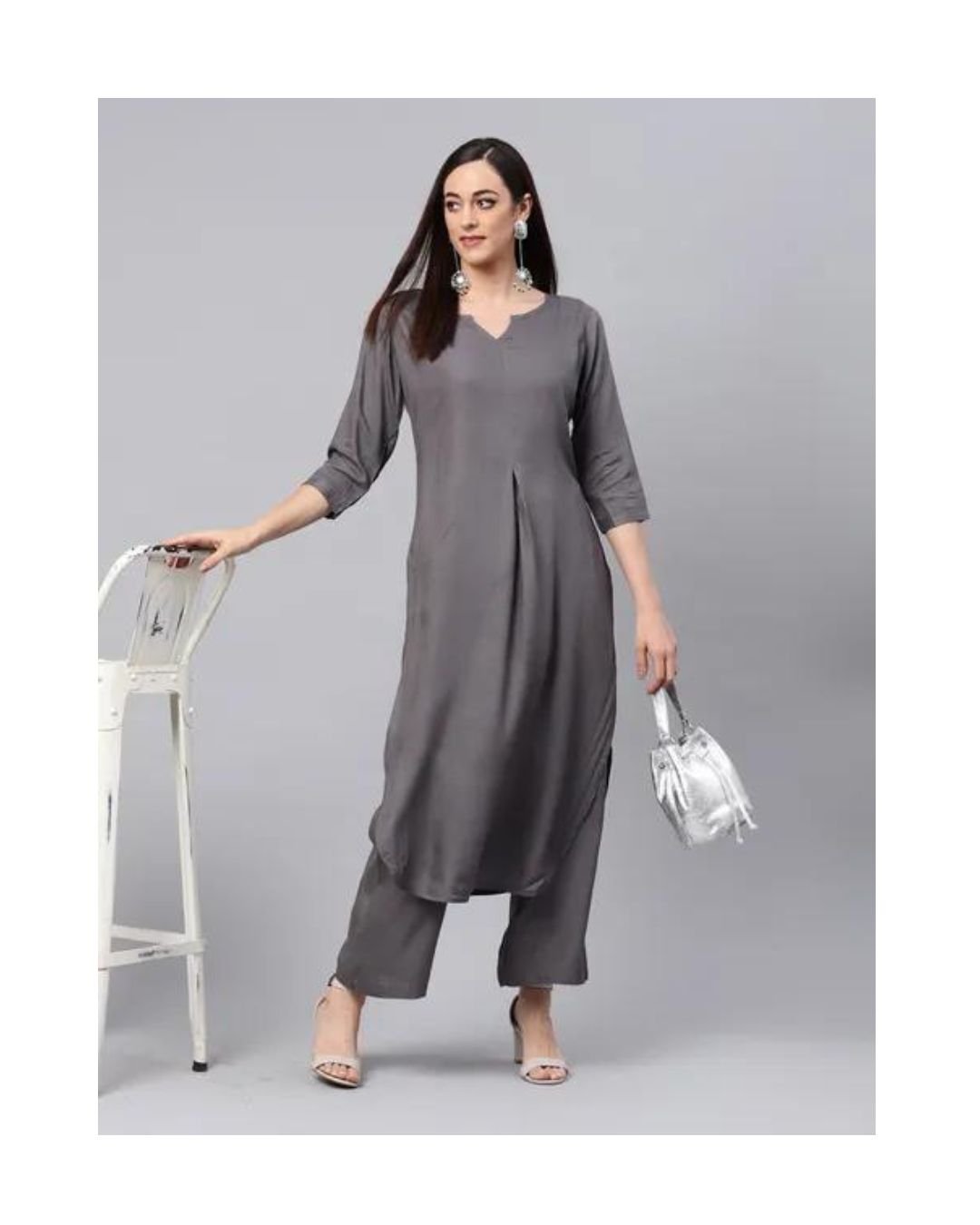 Gracefully understated and effortlessly stylish, this grey solid straight kurta set is a must-have for every modern woman’s wardrobe. With its minimalistic design and sleek tailoring, this outfit offers the perfect combination of elegance, comfort, and versatility.