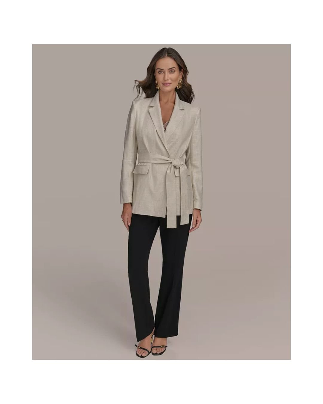 Channel the spirit of empowered minimalism with our Beige Linen Blend Belted Blazer, an ode to earthy elegance. Tailored for the woman who prefers effortless sophistication, this blazer features a relaxed structure enhanced by a self-tie waist belt for a flattering silhouette.