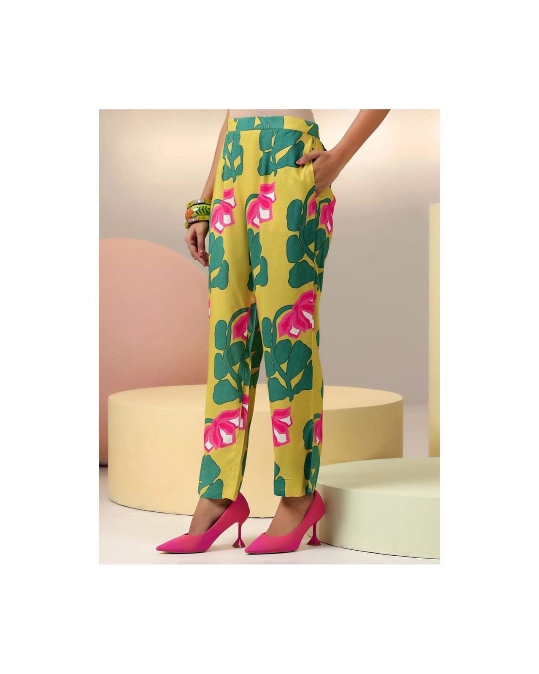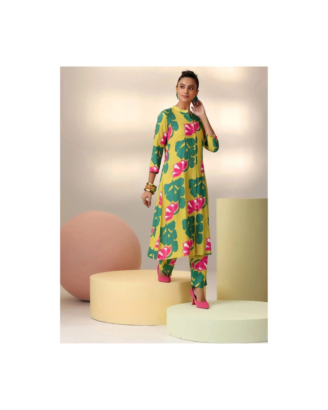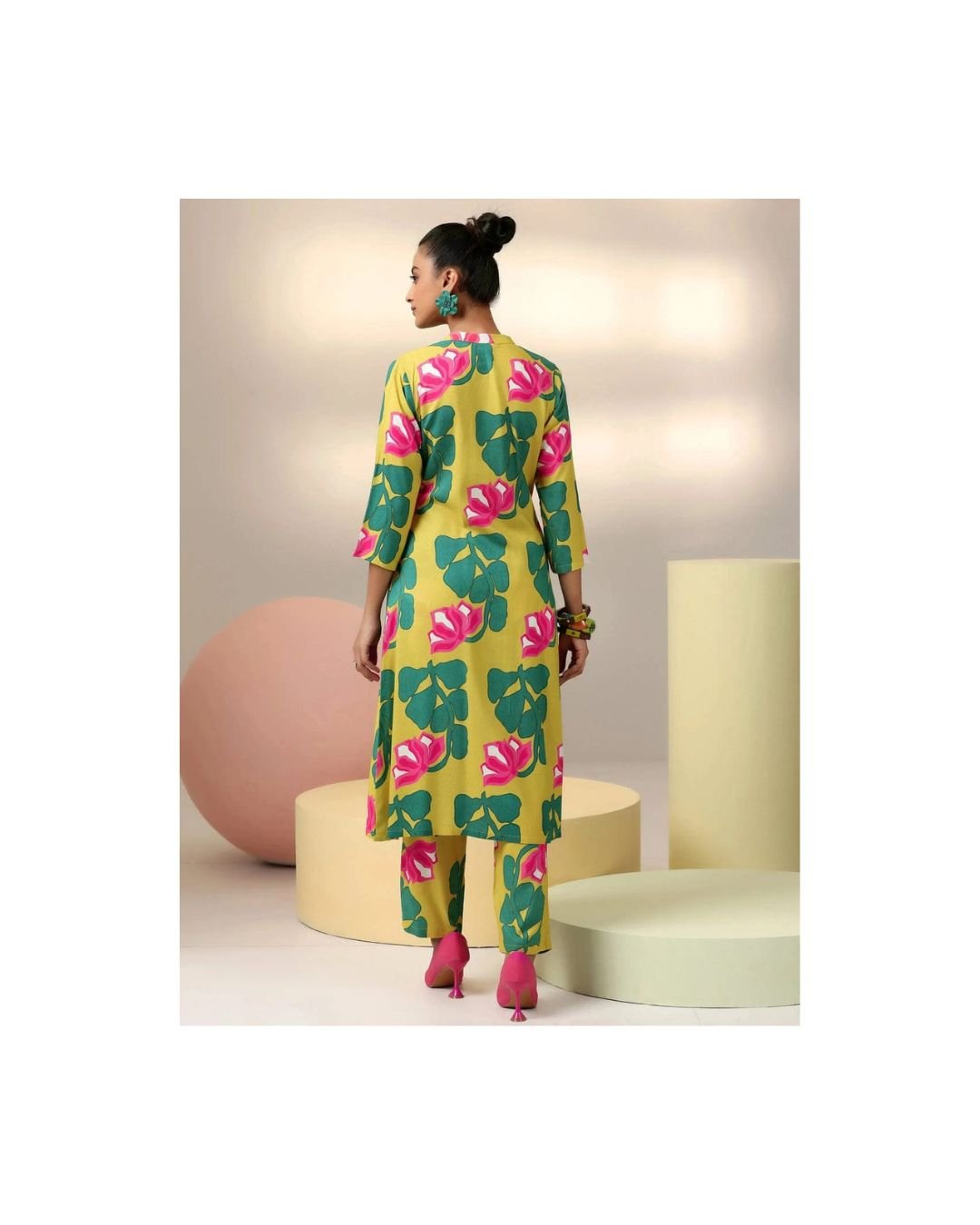 • Outfit Name: Lime Yellow Bold Floral Co-ord Set with Shirt Kurta and Pants