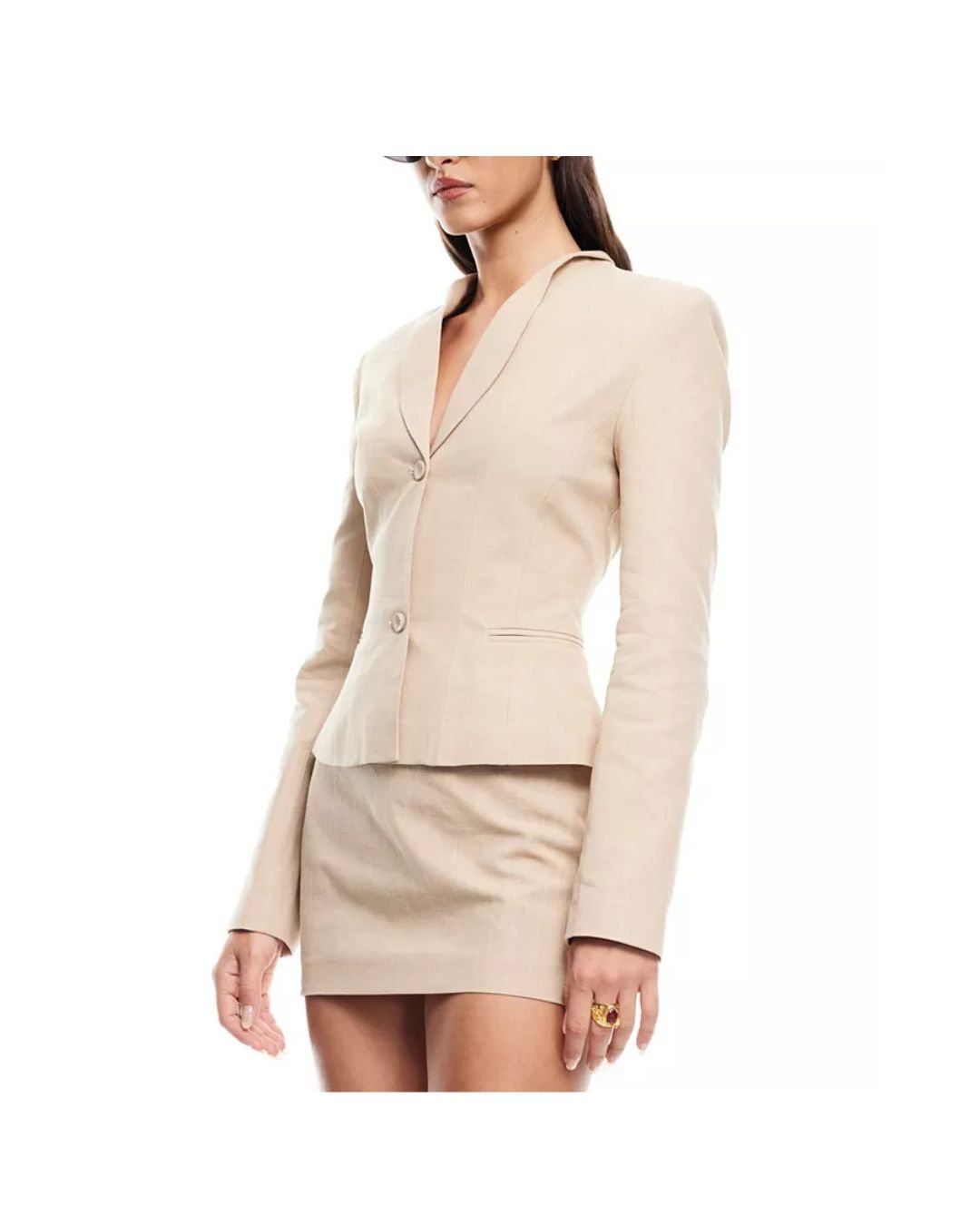 Meet the ultimate neutral power statement – the Nude Power Co-ord Set. Crafted for the modern woman who balances elegance with authority, this set pairs a sharply tailored blazer with a chic mini skirt for a clean, commanding look.