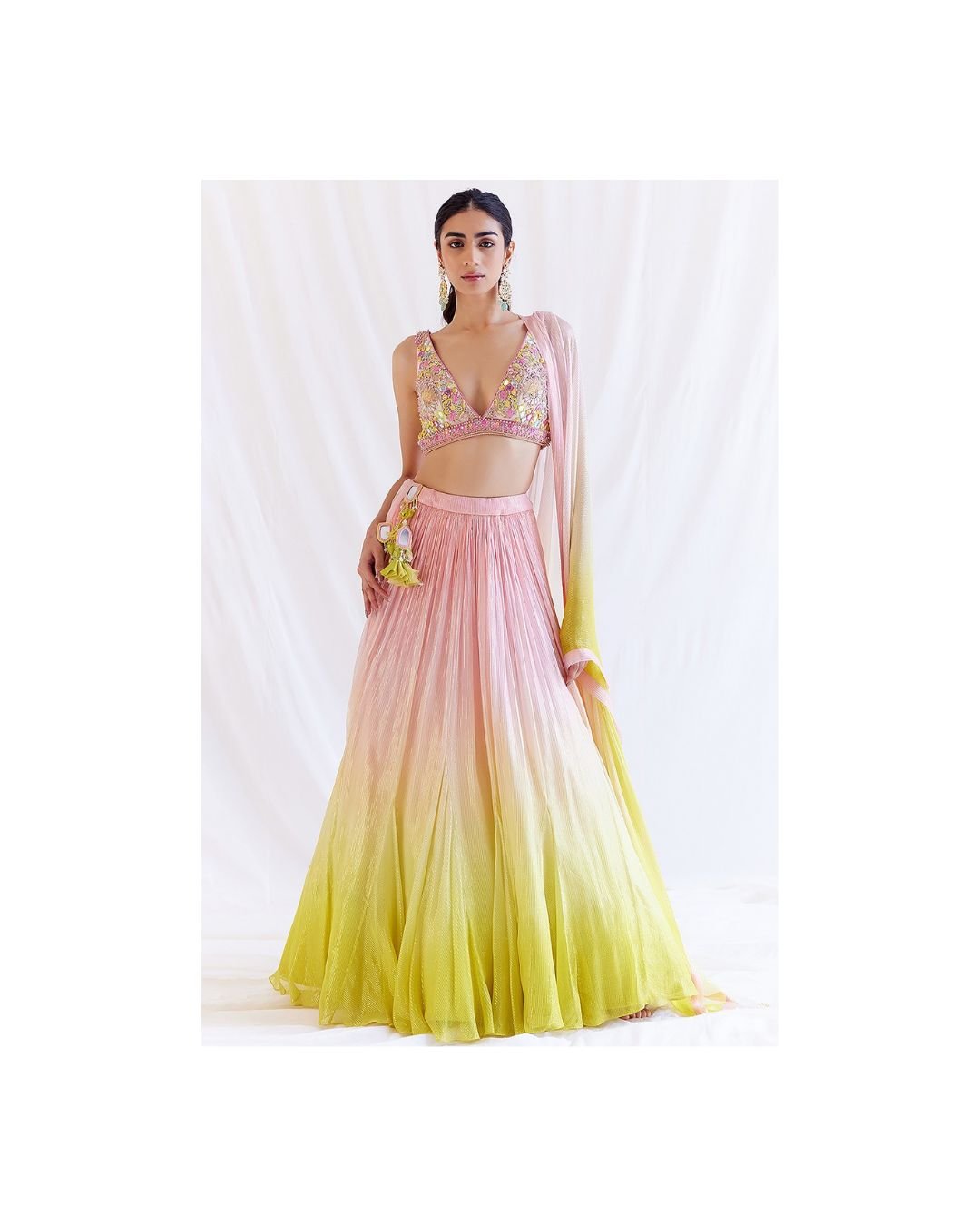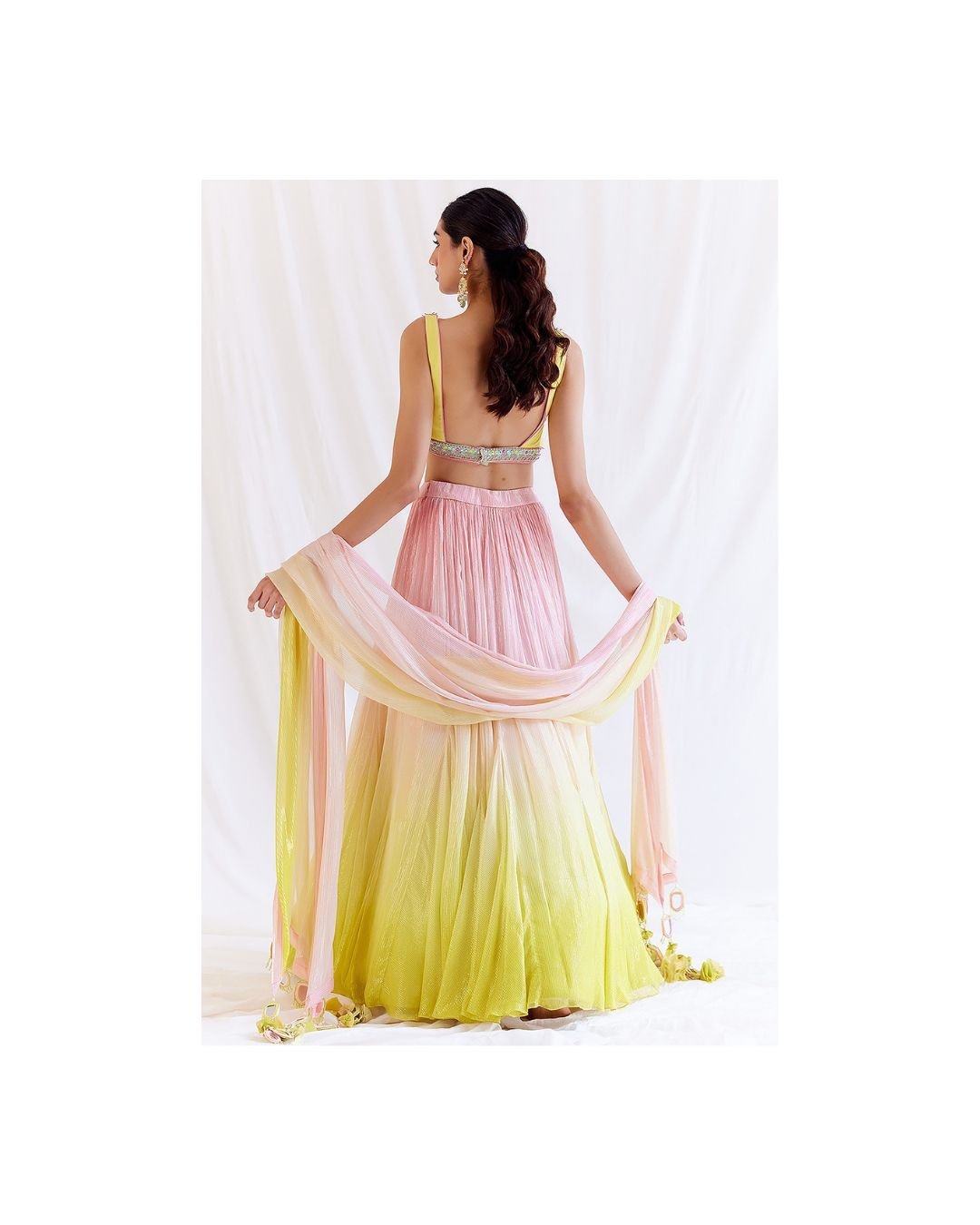 Ombre pastel pink & lime yellow lehenga setOmbre pastel pink & lime yellow lehenga set