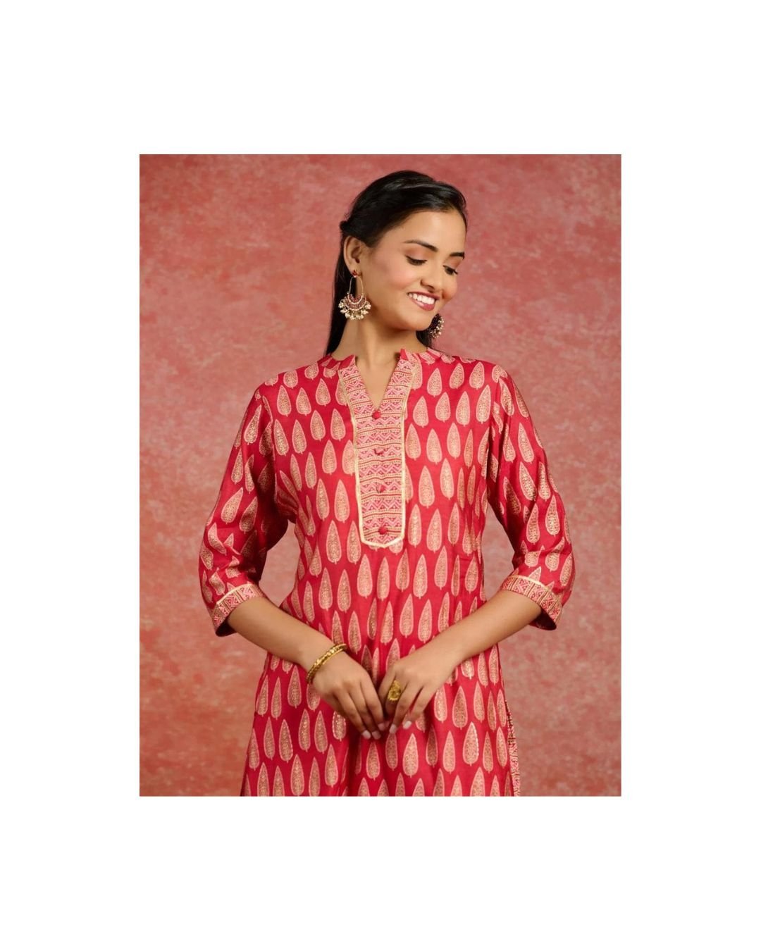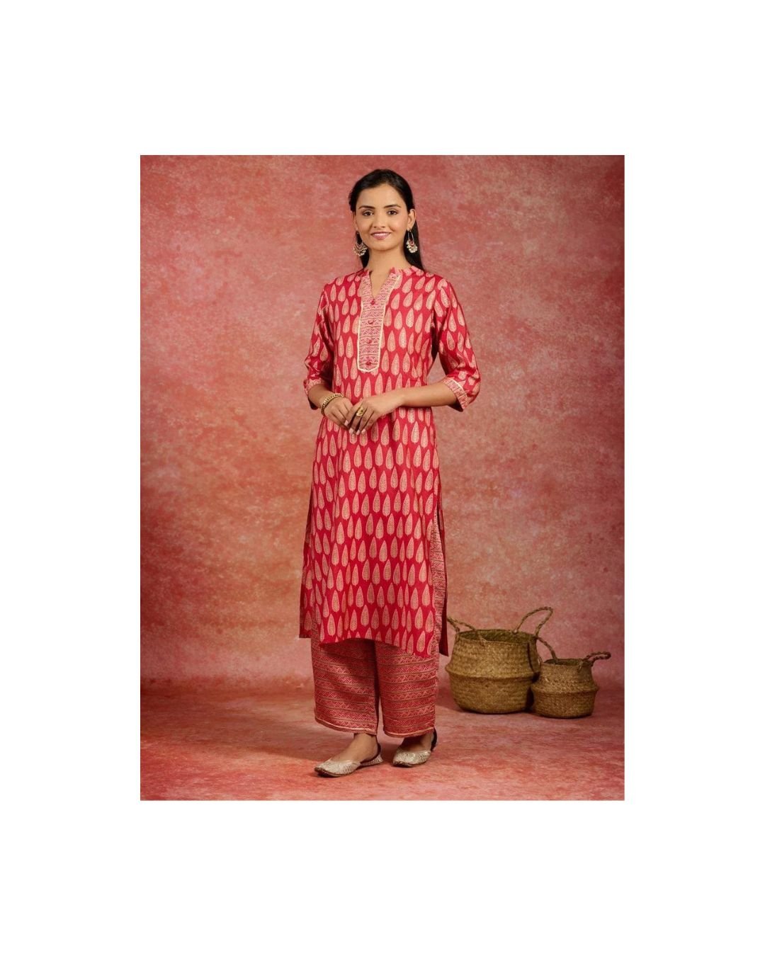 Brighten up your everyday ethnic wardrobe with this elegant Red Printed Kurta Palazzo Set, crafted to give you a graceful and comfortable look. Designed for both casual and festive wear, this outfit is a perfect blend of tradition and comfort.