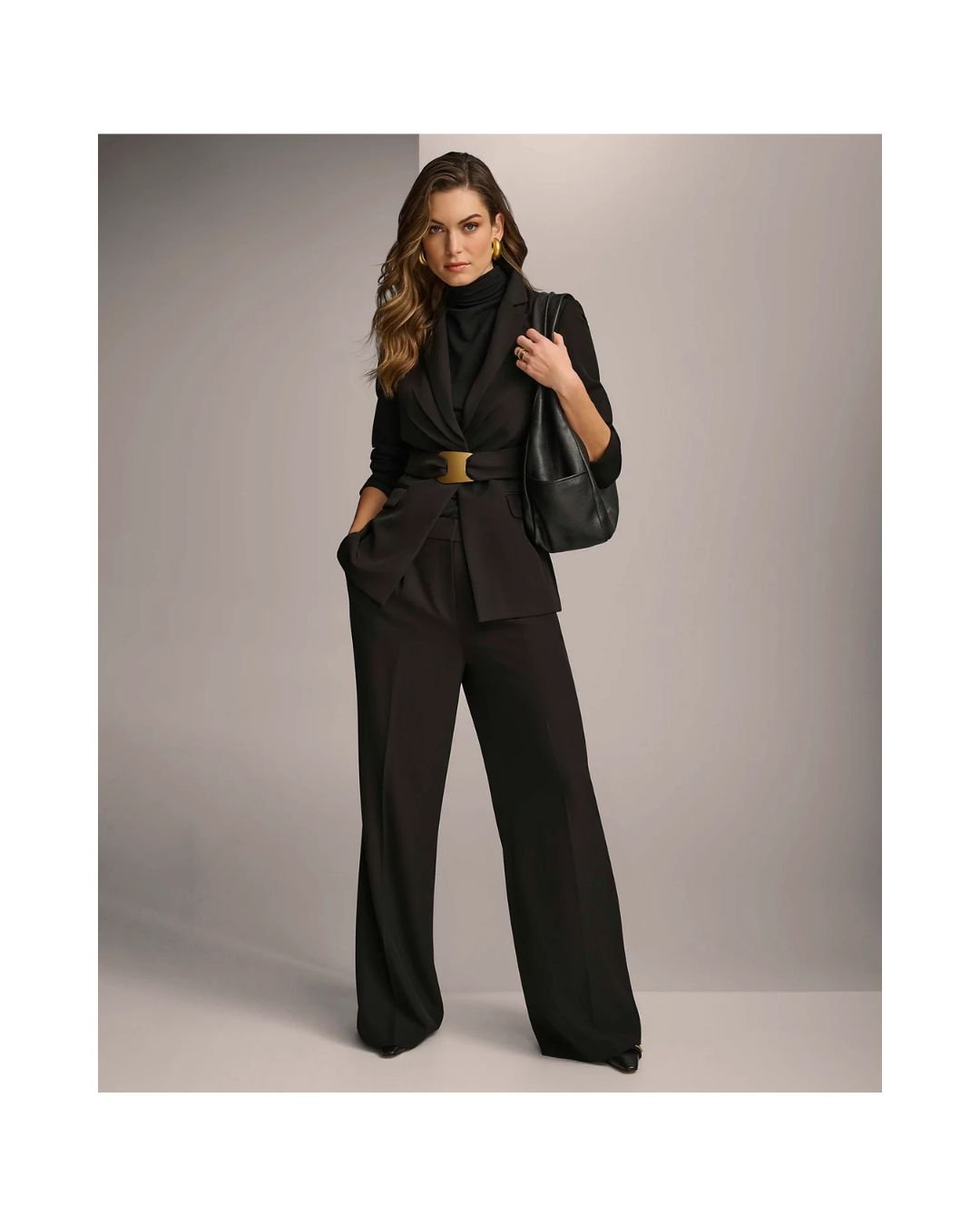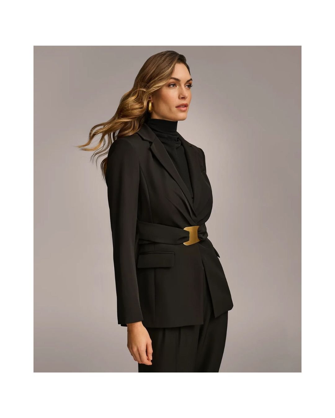 Women’s Black Belted Blazer with Gold Buckle – Power Suit EditionWomen’s Black Belted Blazer with Gold Buckle – Power Suit Edition