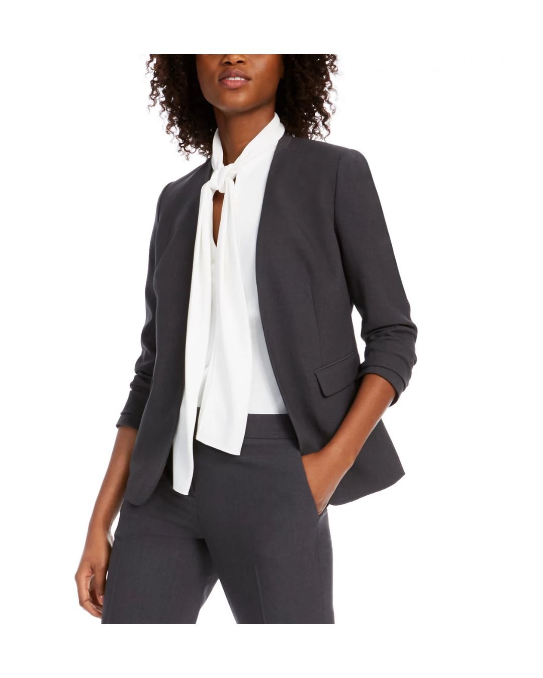 Made from a premium, soft-structured fabric, it offers all-day comfort without compromising on sophistication. The three-quarter ruched sleeves add a touch of relaxed charm, making it ideal for office hours as well as after-work events.
